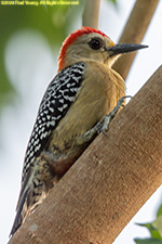 Red-crowned woodpecker (males left, female right), Melanerpes rubricapillus