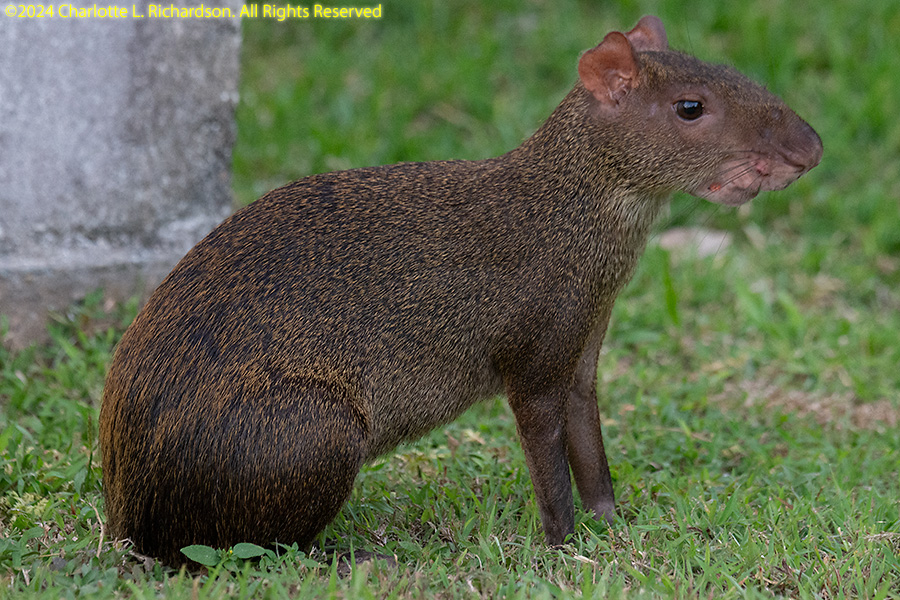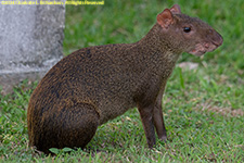Agoutis are small rodents native to Central America. They are related to guinea pigs, capybaras, and pacas.
