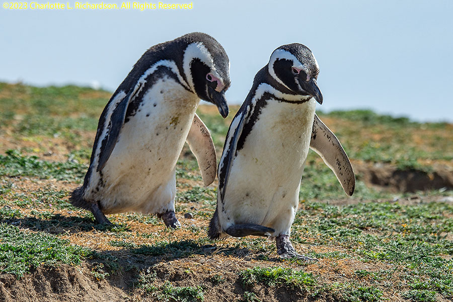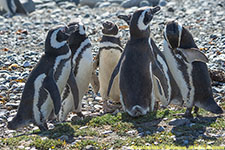 Monumento Natural Los Pinguinos on 97-hectare Isla Magdalena in the Straits of Magellan 37 km northeast of Punta Areans is home to a colony of more than 150,000 Megallanic penguins, Sphenicus magellanicus. The birds are present in the breeding colony from early October to April.