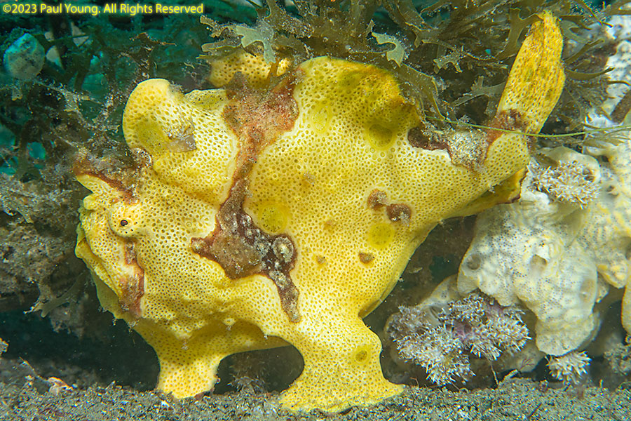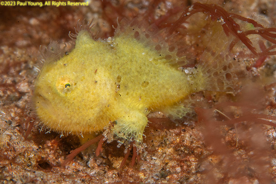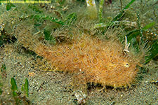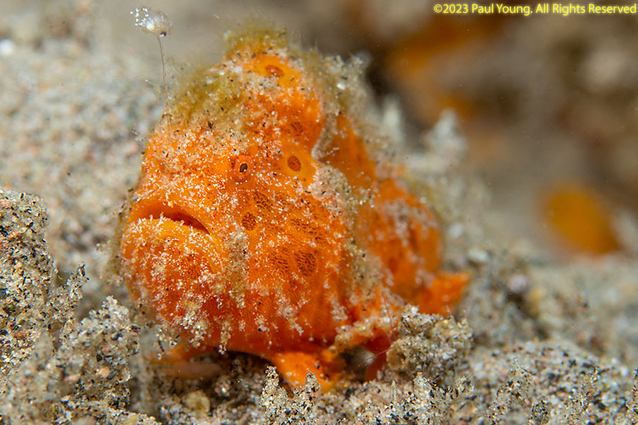 Hairy (striated, striped) frogfish (juvenile, left), Antennarius striatus