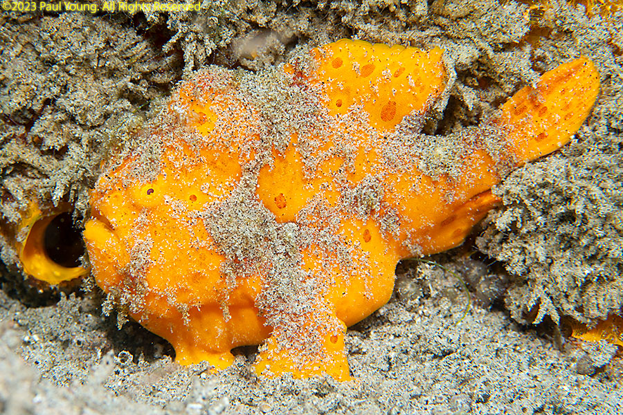 Warty (clown) frogfish, Antennarius maculatus (juvenile)
