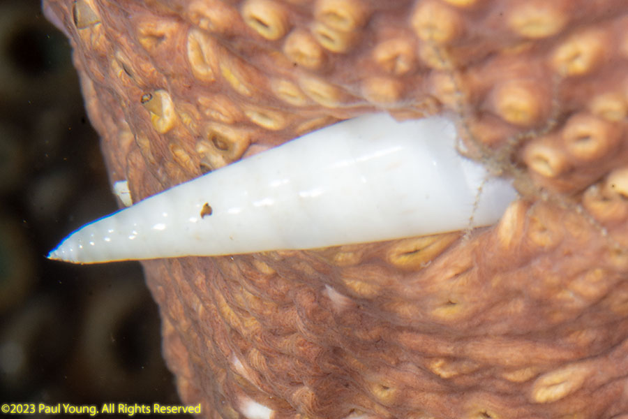 Fire urchin snail, Luetzenia (Echineulima) asthenosomae