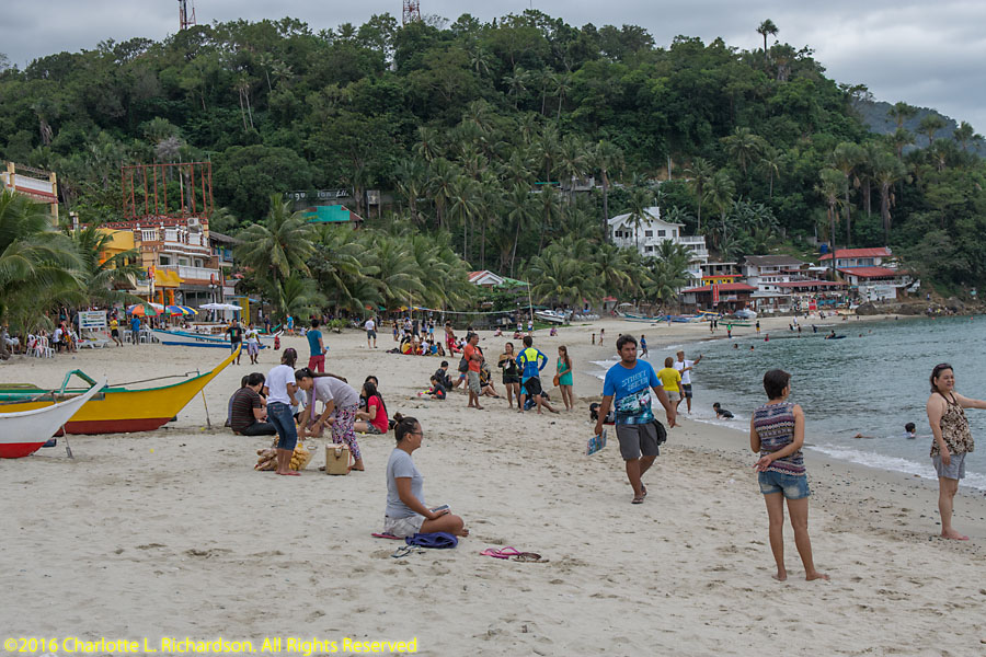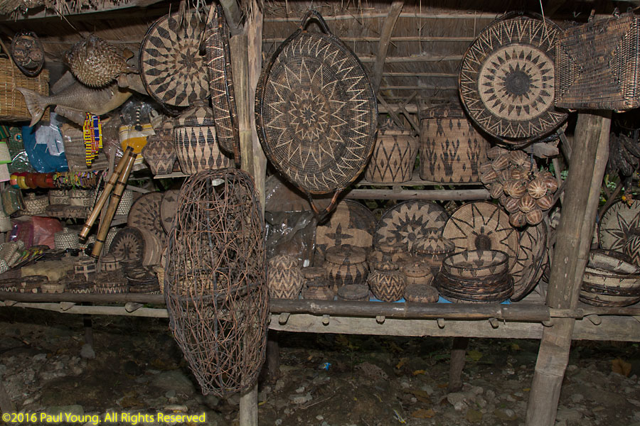 Mangyan village: The Mangyan are the indigenous people of Mindoro Island, arriving about 800 years ago. They are a proto-Malay people and make up about 10% of the population of Mindoro. There are eight tribal groups, each with their own language and customs. The Iraya-Mangyan people here in Talipanan were driven out of the hills several decades ago by fighting between the government and the communist New People's Army rebels. They settled along the beach just north of Talipanan Beach. The wealthy family who owned that land built a sustainable-livelihood program for the indigenous Mangyan and helped revive the basket-weaving craft.