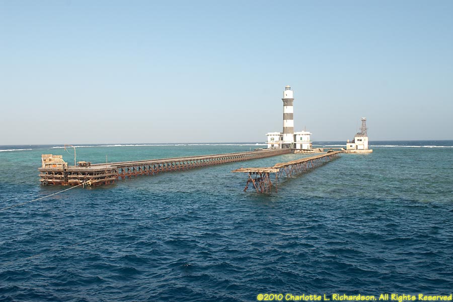 Daedalus Reef is an oval reef, 1300' long by 330' wide, with a lighthouse and pier, and is part of the Marine Park. The lighthouse, on an artificial island, was built in 1863 and rebuilt in 1931. Currents here run north to south.