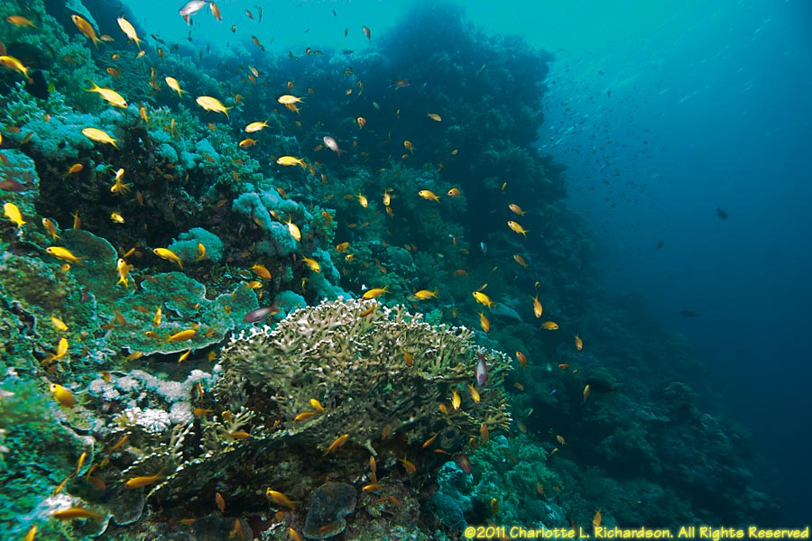 There is wall diving along the entire perimeter of the atoll, with a wide variety of pelagics, particularly thresher sharks. The east wall is mostly hard corals while the west wall has more soft corals.