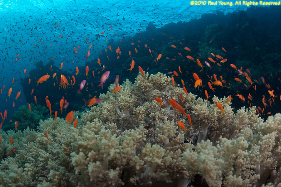 There is wall diving along the entire perimeter of both islands, with a wide variety of pelagics.
