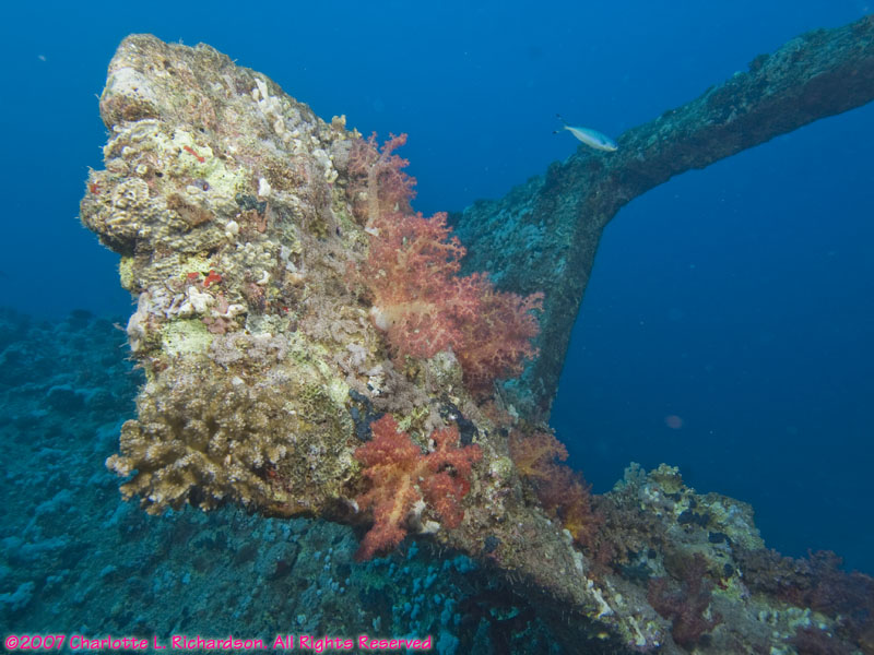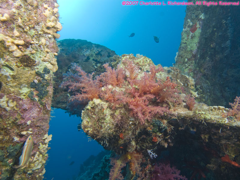 prop soft coral rudder soft coral on wreck diver over wreck fire coral anthias soft coral sea fan