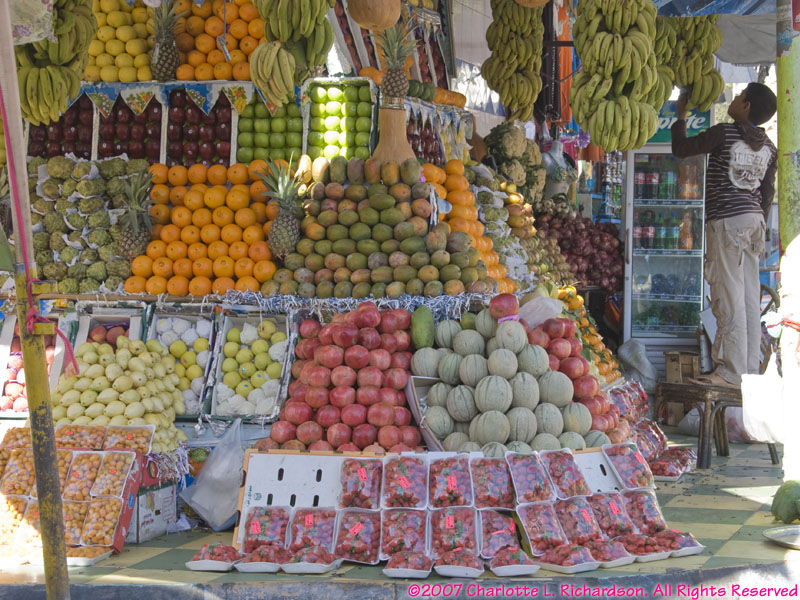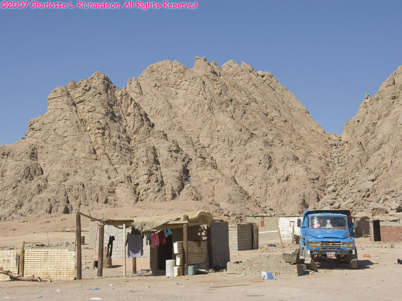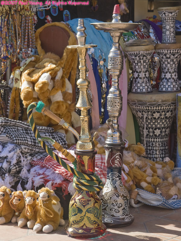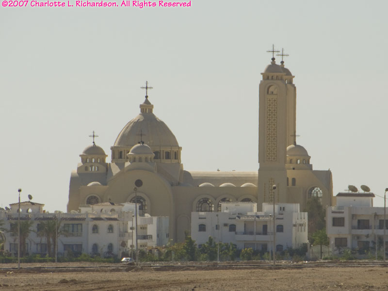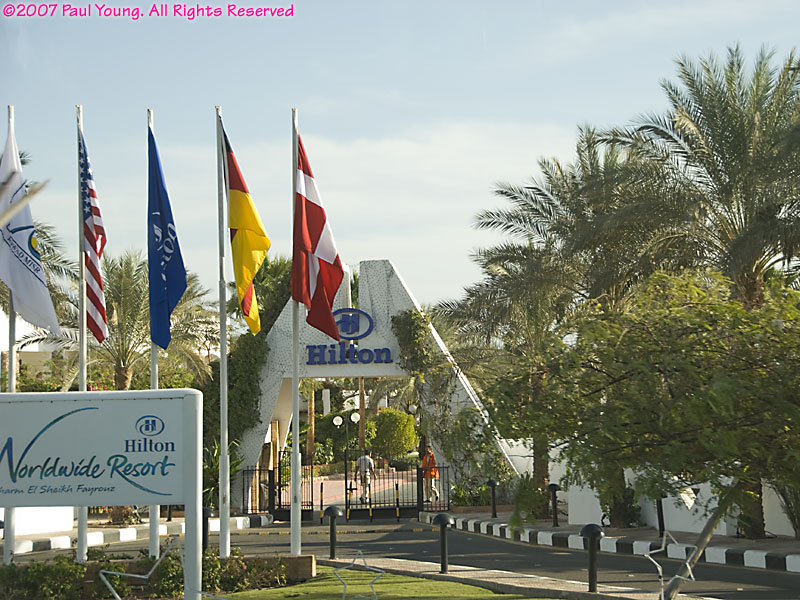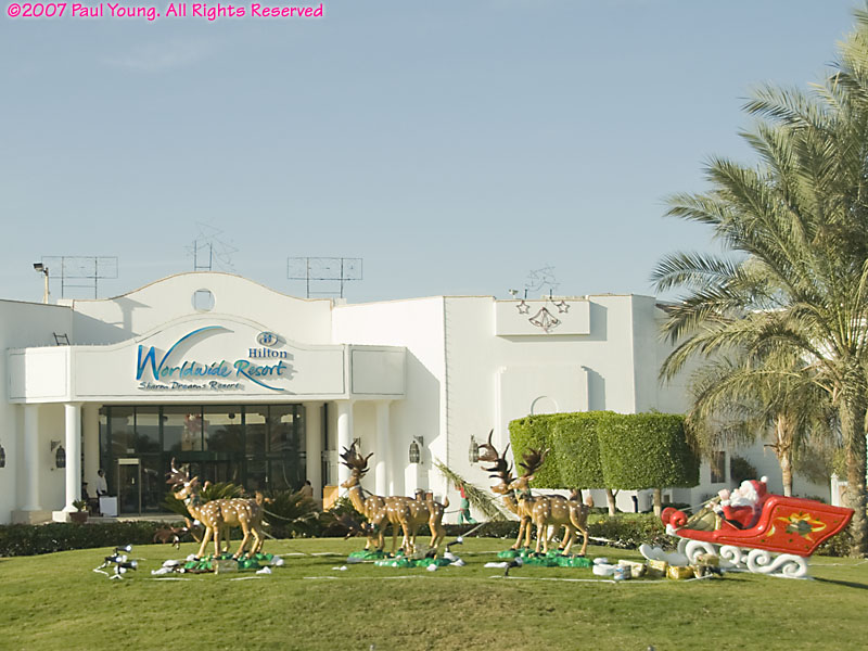 Near the southern tip of the Sinai Peninsula Sharm el Sheik and Na'ama Bay form a long strip of resort hotels along the coast. The modern international airport is about 8 km north of Na'ama Bay. There are direct flights from many cities in Europe; we flew in from London.