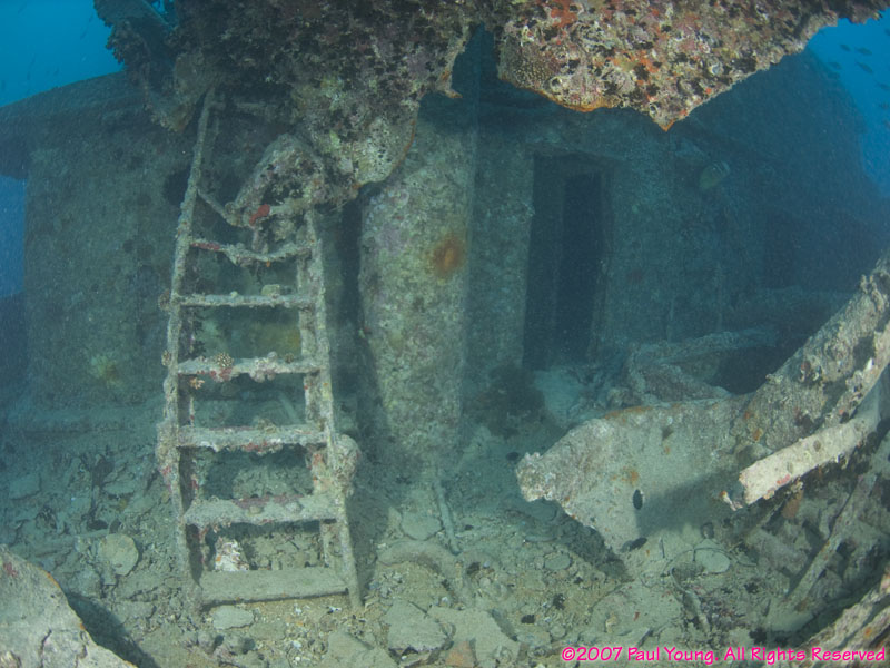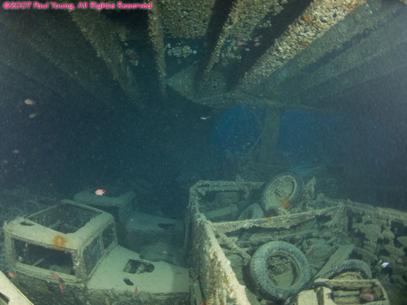 The most famous wreck in the Red Sea, the SS Thistlegorm, a 129m (420') World War II armed British supply ship, sunk October 6, 1941 at Sha'ab Ali. It was bound from Glascow, Scotland, to Alexandria, Egypt, with supplies for British troops, including tanks, armorered vehicles, aircraft, trunks, rifles, grenades, and motorcycles. The wreck is deep (52' to 105') and there is usually a strong current present. It is one of the most heavily-dived shipwrecks in the world.
