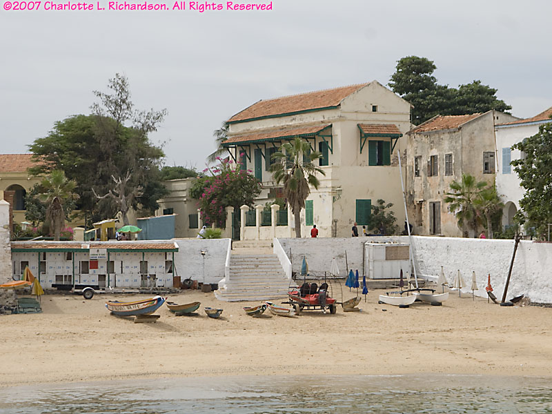 A twenty-minute ferry ride from the dock in Dakar, Gorée Island was first settled by Portuguese merchants in the 15th century. It was the center of the slave trade from this part of West Africa for three hundred years. The symbolically famous "Door of No Return" in the 18th century Maison des Esclaves (Slave House) is a point of pilgrimage for African Americans. The peaceful island has colonial brick buildings from the Portuguese, Dutch, English, and French eras, and hosts an artists' colony.