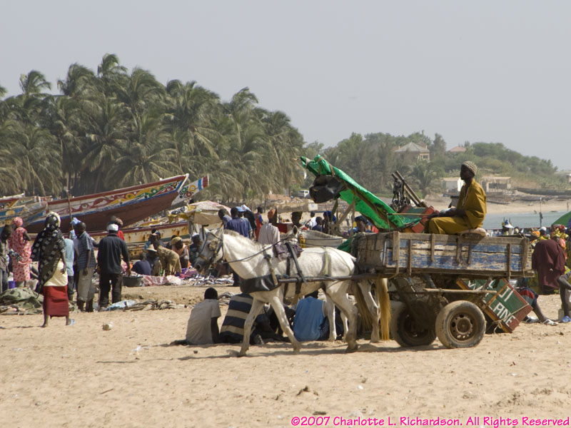The fishing center of Mbour is north of Joal-Fadiout, 5km south of the tourist center at Saly and 80 km south of Dakar. The huge fish market along the beach is quite a sight!