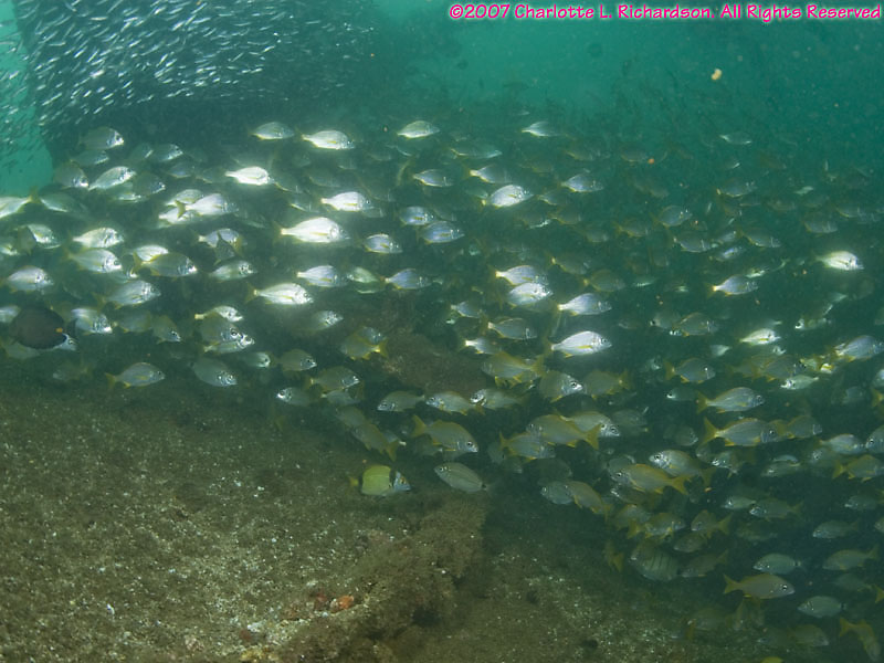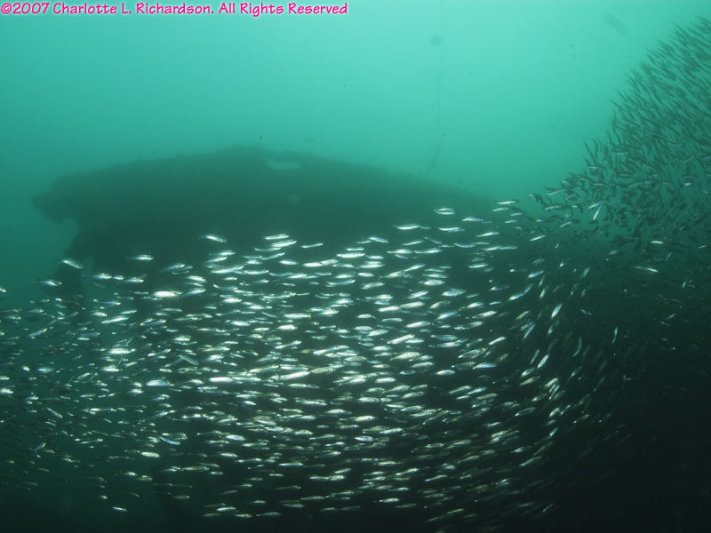 The most interesting site is the wreck of the Tacoma, a British World War II warship that was bombed in Dakar harbor and towed offshore to sink right on the ferry route between Dakar and Gorée, marked these days by a navigation buoy. This wreck had the largest fish population of any wreck we have photographed on anywhere in the Atlantic!