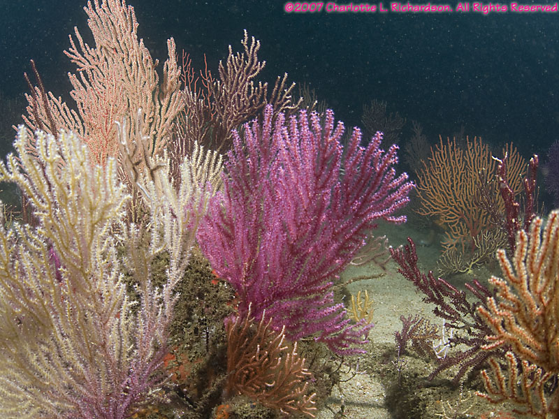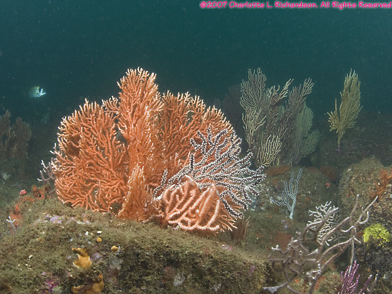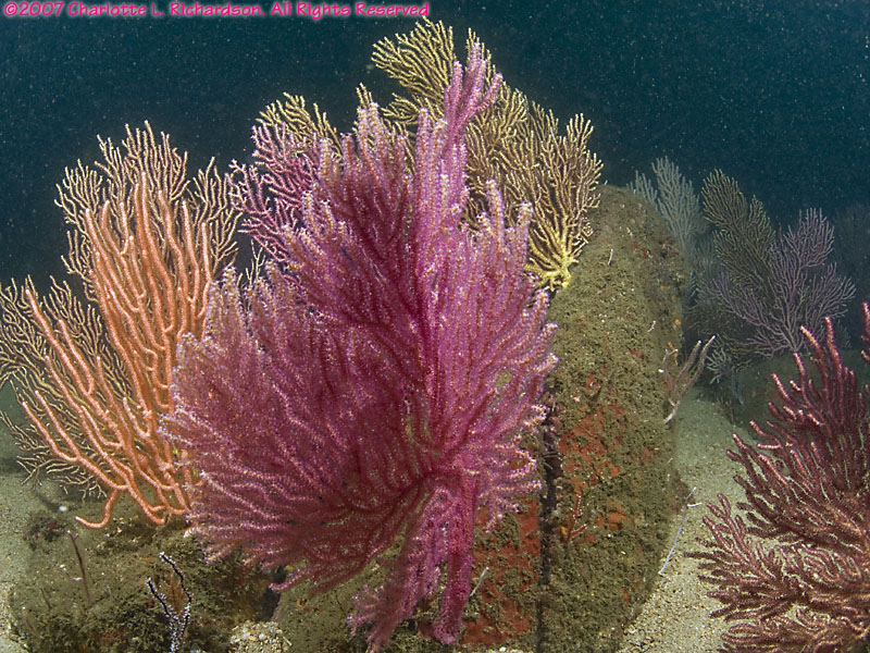 Deeper sites further south closer to La Somone featured colorful gorgonium fans, no two of which were the same color.
