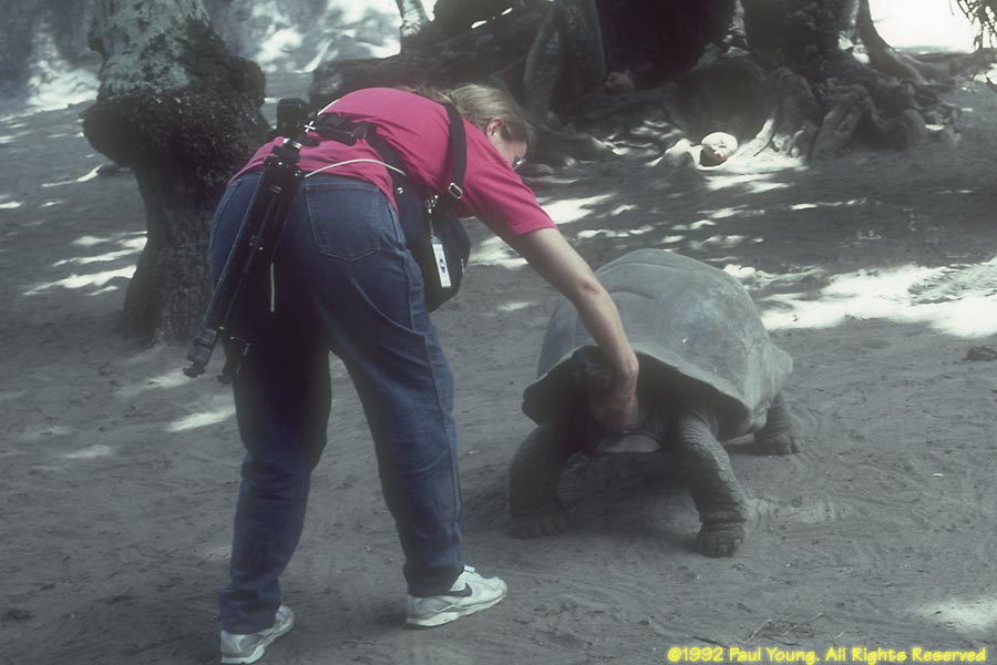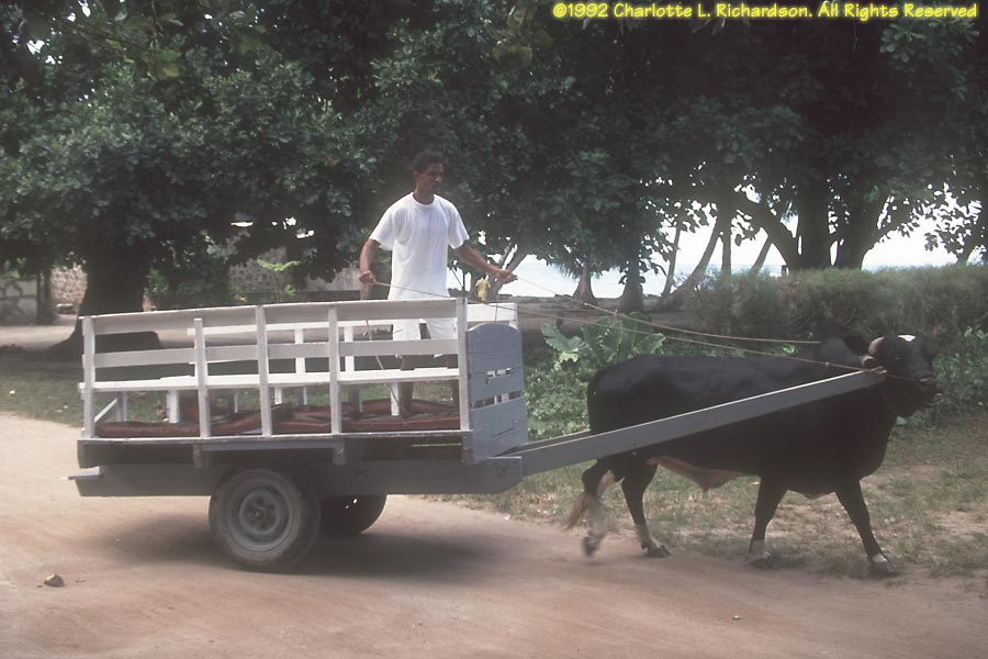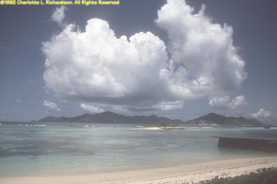 La Digue is the 4th largest island in the Seychelles, about 3 miles long by 2 miles wide. It lies 31 miles from Mahe and three miles east of Praslin. It is the most secluded of the inner islands, having no natural harbor and being surrounded by coral reefs. The highest point is 1092 feet at Nid D'Aigles (Eagle's Nest). The island's pink granite cliffs and huge boulders rise out of white sand beaches with palm forests. It is home to the very rare black Seychelles flycatcher, Terpsiphone corvina, locally called "veuve" ("widow"). La Digue's population of around 2000 makes it the third most populous island in the country. Automobiles are banned. Transportation on La Digue is by ox cart or bicycle.