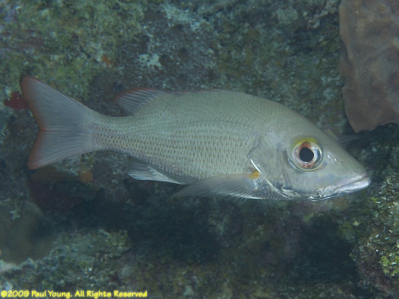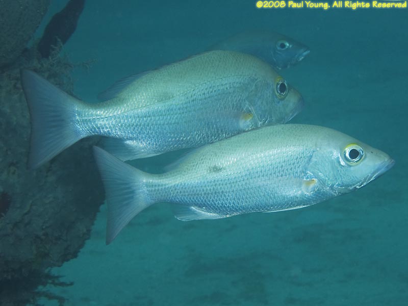 Mahogany snapper (left- juvenile), Lutjanus mahogoni