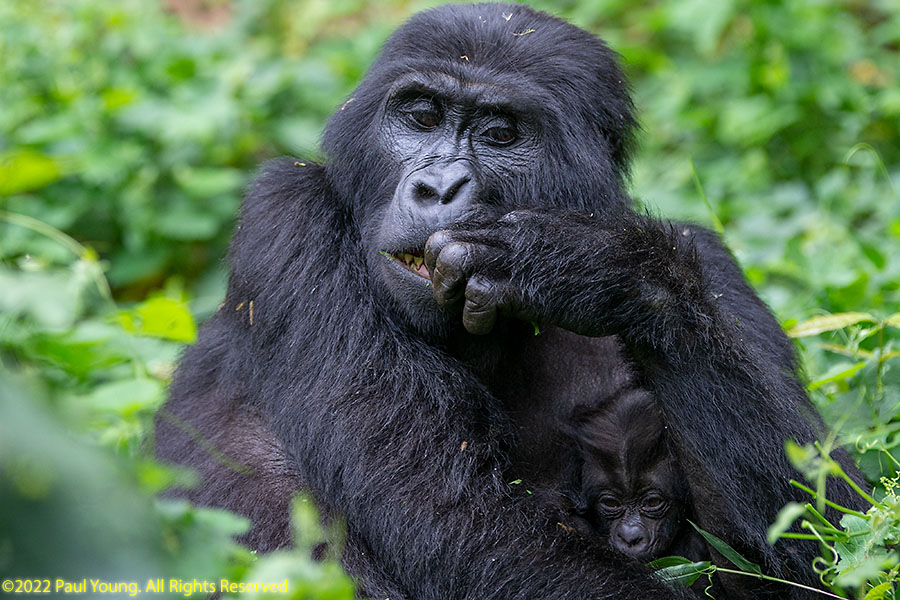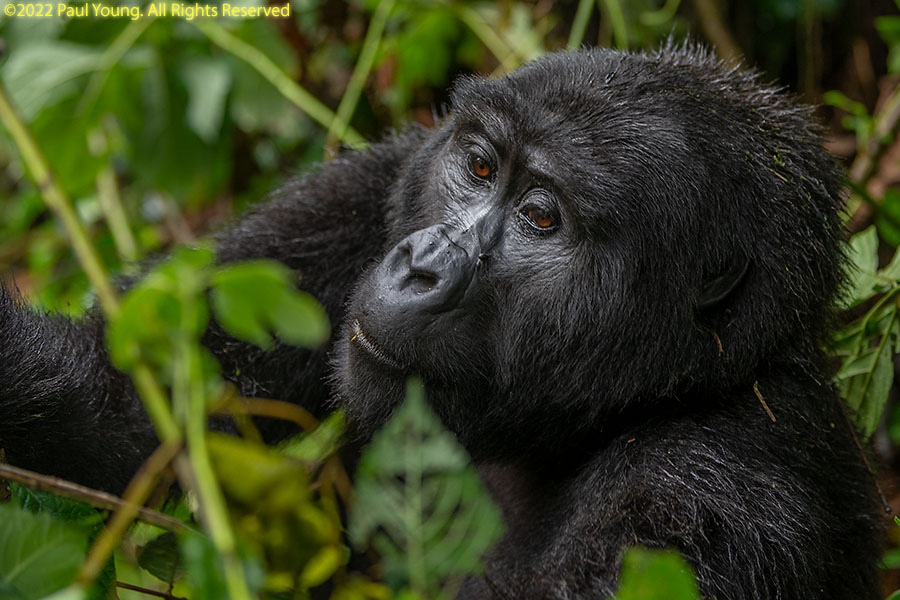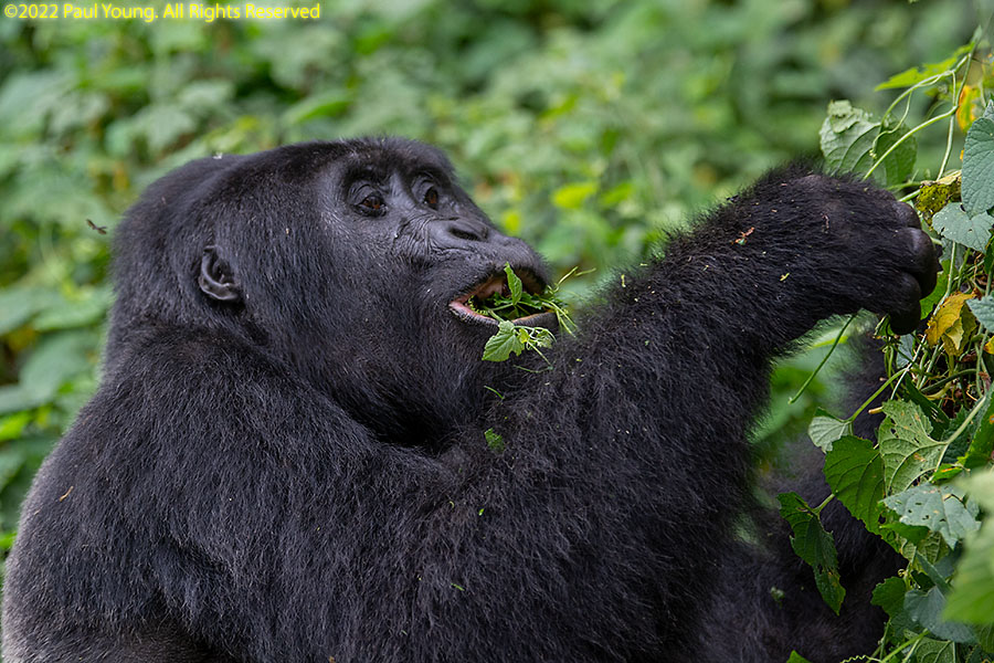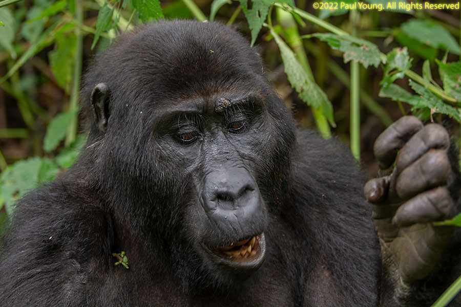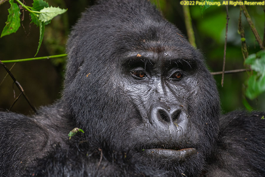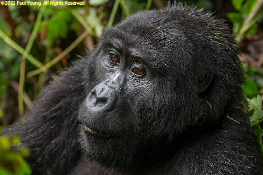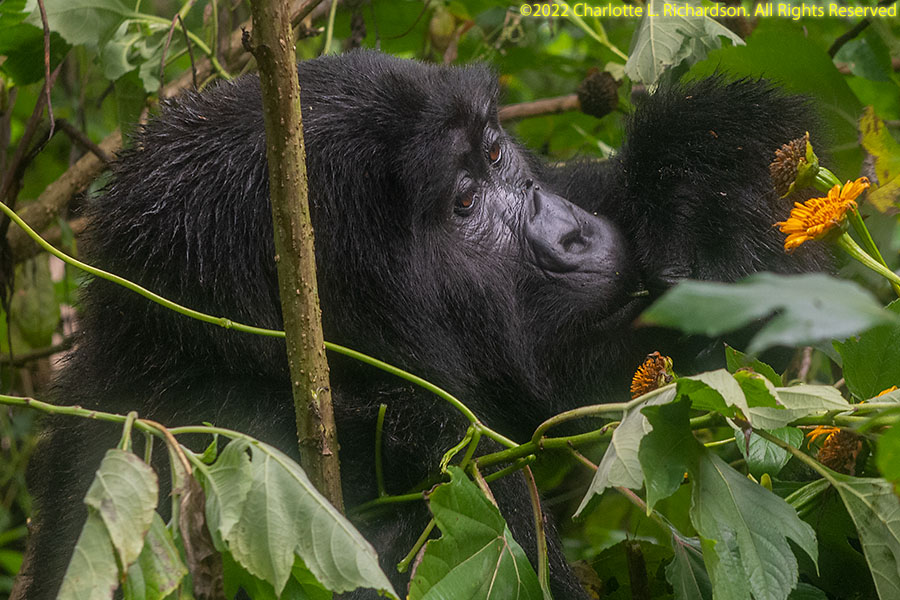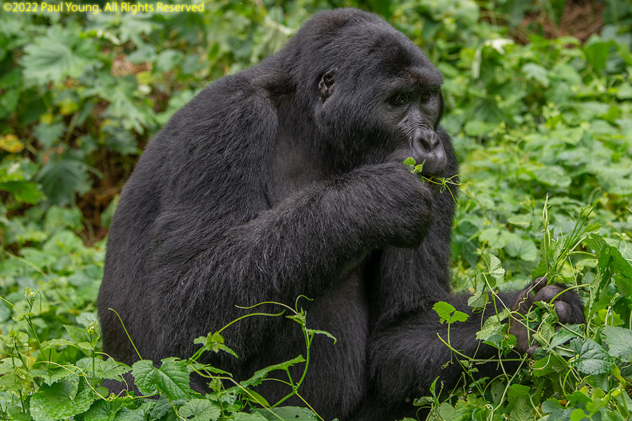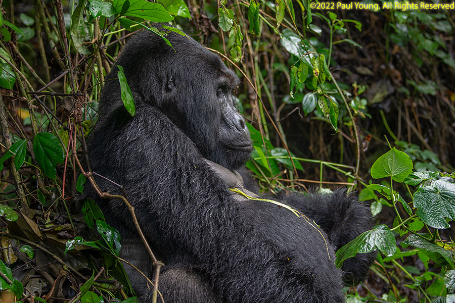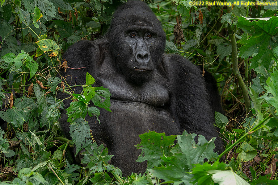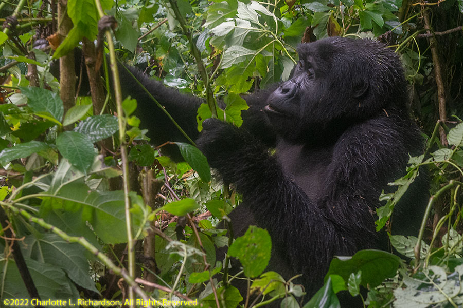 The main tourist activity is gorilla tracking. These animals are the eastern mountain gorilla, Gorilla beringei beringei.