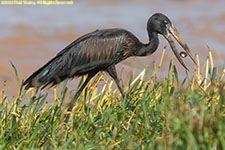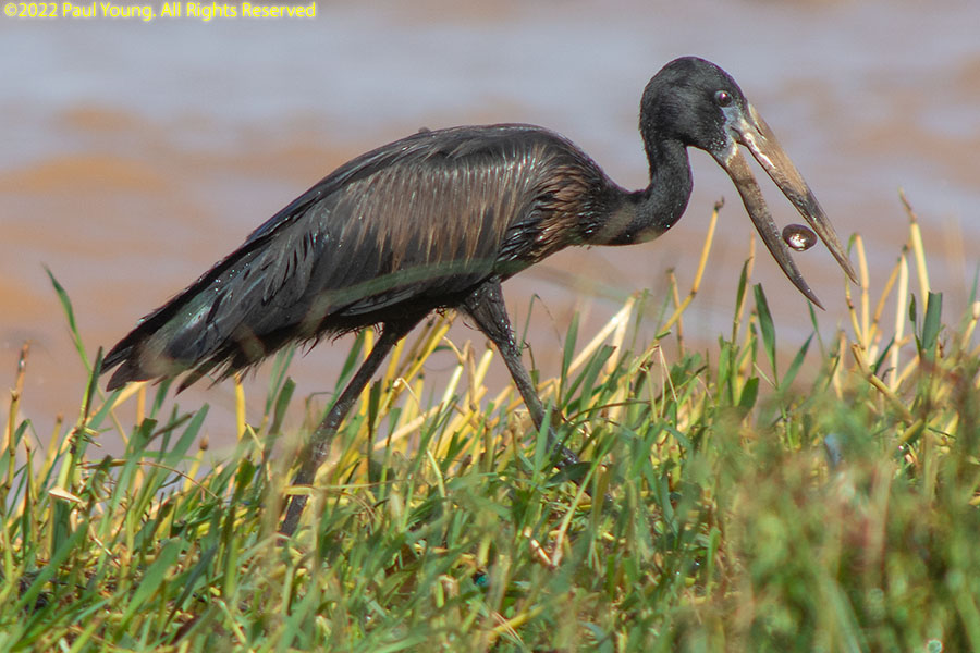 African openbill, Anastomus lamelligerus. This stork eats snails.