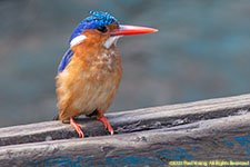 Malachite kingfisher, Corythornis cristatus, adult (left) and juvenile (right)