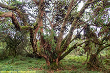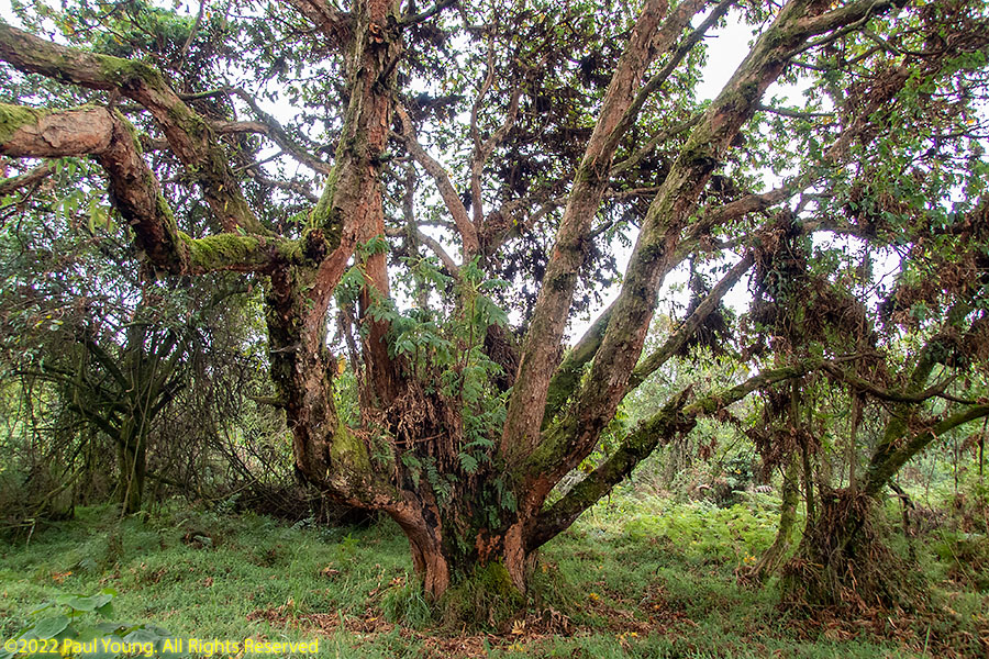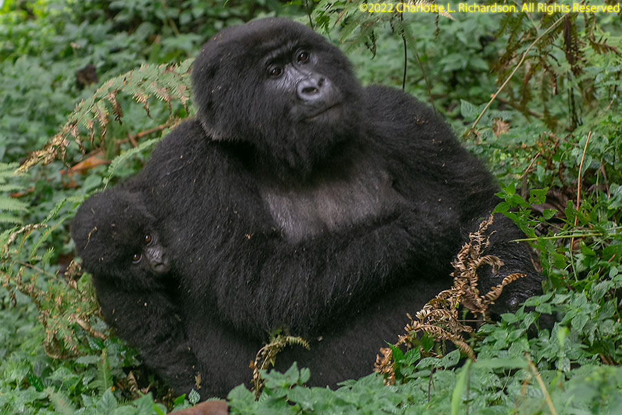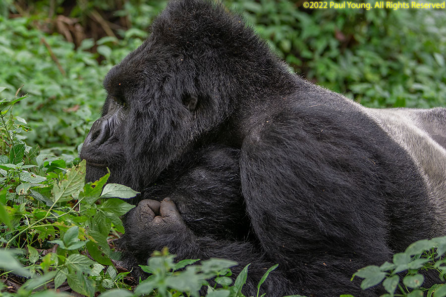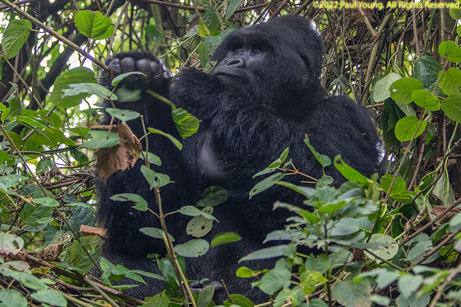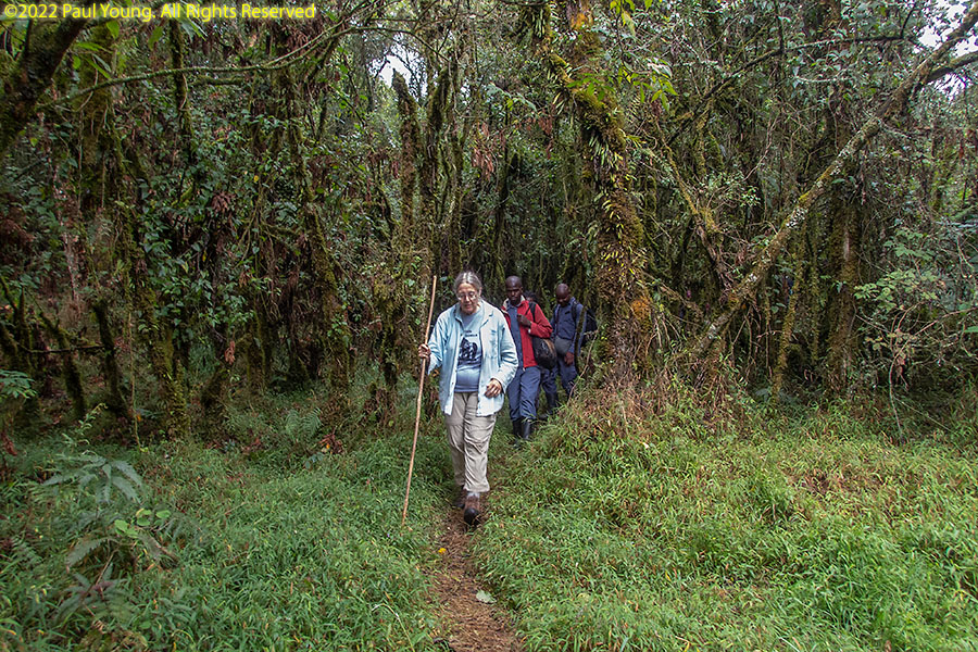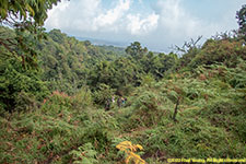 The 13.2 square mile park is located in the Virunga Mountains, a chain of isolated free-standing volcanic cones, and encompasses three inactive volcanoes. It ranges in elevation from 2227 meters to 4127 meters (7306' to 13,540'). Tracking of either the gorillas or the golden monkeys can be arduous at those elevations. Bwindi Impenetrable National Park has more families of habituated mountain gorillas at considerably lower elevations, but the golden monkeys can only be seen at Mgahinga.