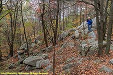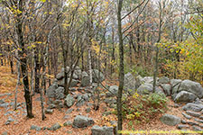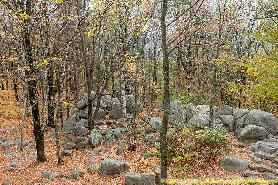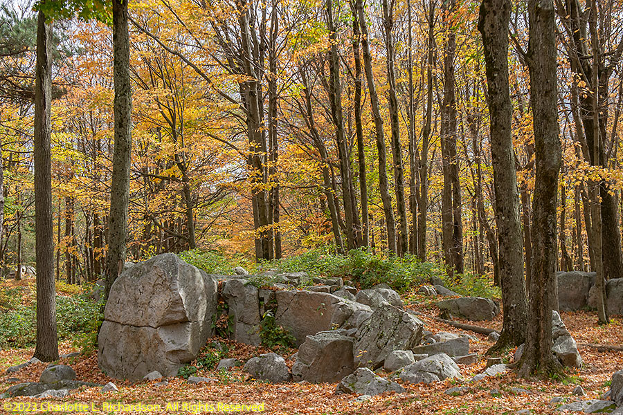Roche-a-Cri (from the French: "crevice in the rock") has a 300' rock outcropping, the largest of these formations, with native American petroglyphs.