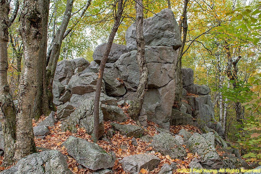 Rib Mountain State Park is near Wausau. The mountain is a narrow ridge of quartzite rising 800' above the relatively flat central Wisconsin plain. The quartzite is metamorphosed sandstone and is much more resistant to erosion than the surrounding rocks. It was used as a lookout point and navigational marker by the Chippewa and early white settlers.