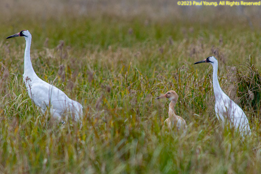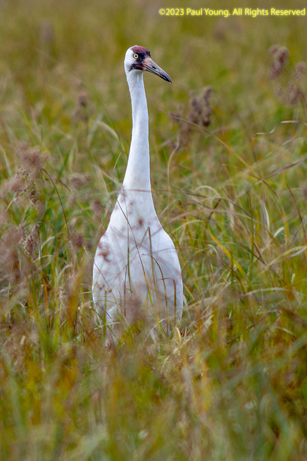 Whooping cranes are the tallest bird native to North America, from 1.2m to 1.6m (4'1" to 5'3") tall, with a swingspan of 2m to 2.3m (6'7" to 7'7").