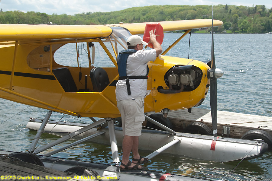 Landing and taking off (on one float; it was a very hot day) on the Housatonic River.