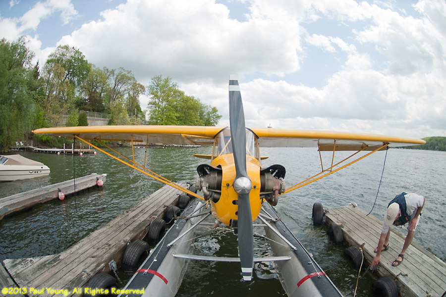 Another visit to fly this Cub with Tony, October 13, 2014. The cowling has been fixed to match the new exhaust system. We mounted the GoPro on the right wing strut. This flight was almost entirely glassy water takeoffs and landings. I step-taxiied under the I84 bridge at one point, taking off again just beyond it.