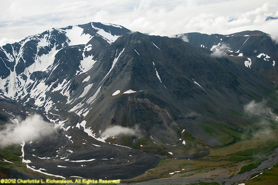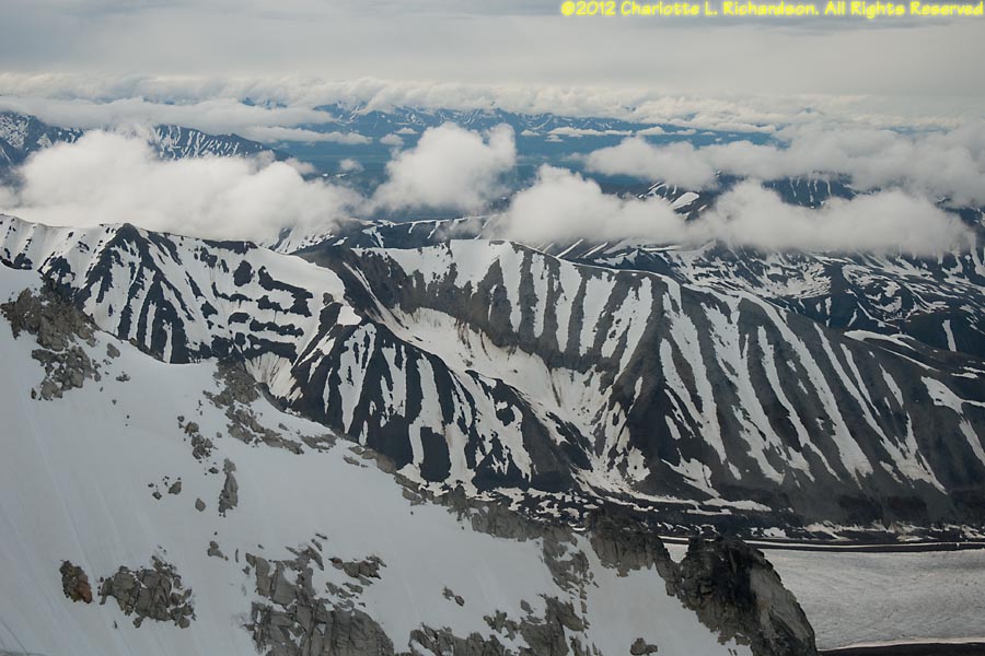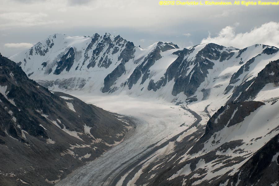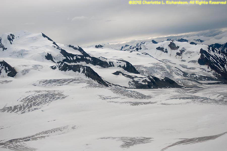 July 7, 2012: Helicopter flight to Yaenerts Glacier on the west side of Mt. Deborah, east of Denali National Park.