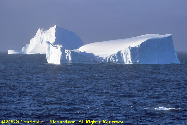 We did not land in the South Orkneys, but traversed the area to see the huge tabular icebergs. These calf off the Weddell Sea's ice shelves and are driven northward by prevailing winds and currents. The large tabular icebergs ground on the shallow continental shelf along the south side of the South Orkneys, forming this "iceberg graveyard".