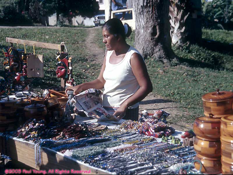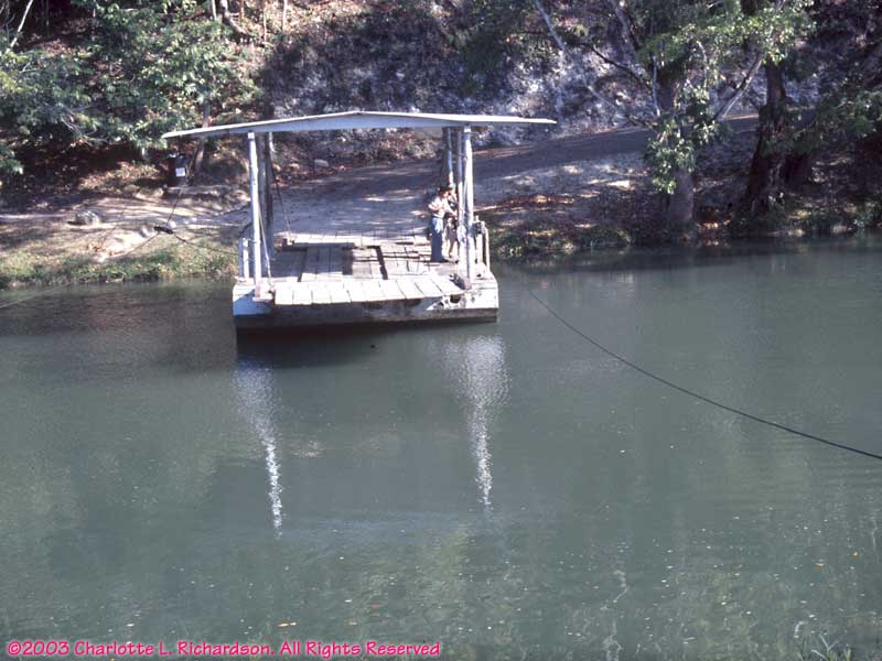 Xunantunich is across the river from the road. The ferry which takes people and vehicles across is hand-operated. Souvenirs are available, of course.