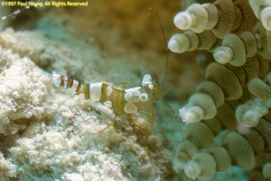 The mantis shrimp lives in a hole. It is unusual to see one out walking. They are very fast and have very powerful claws, strong enough to break bones.
