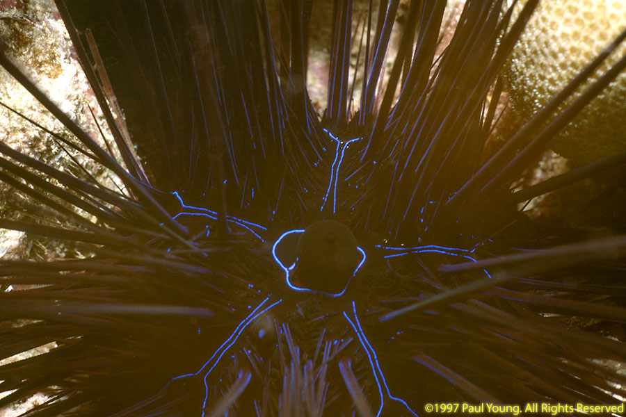 Sea unrchins are spiny globular echinoderms. Like all echinoderms (including sea stars) the adult animals have five-fold symmetry.