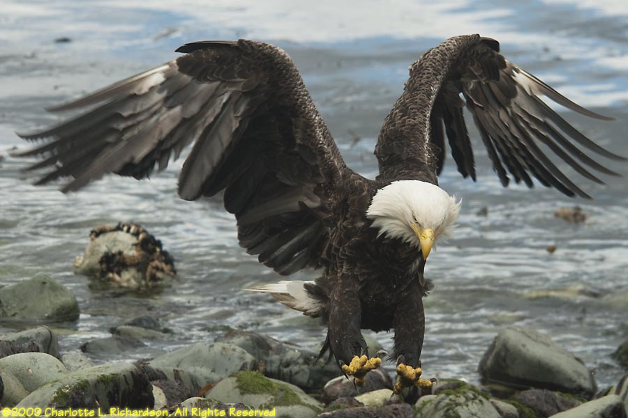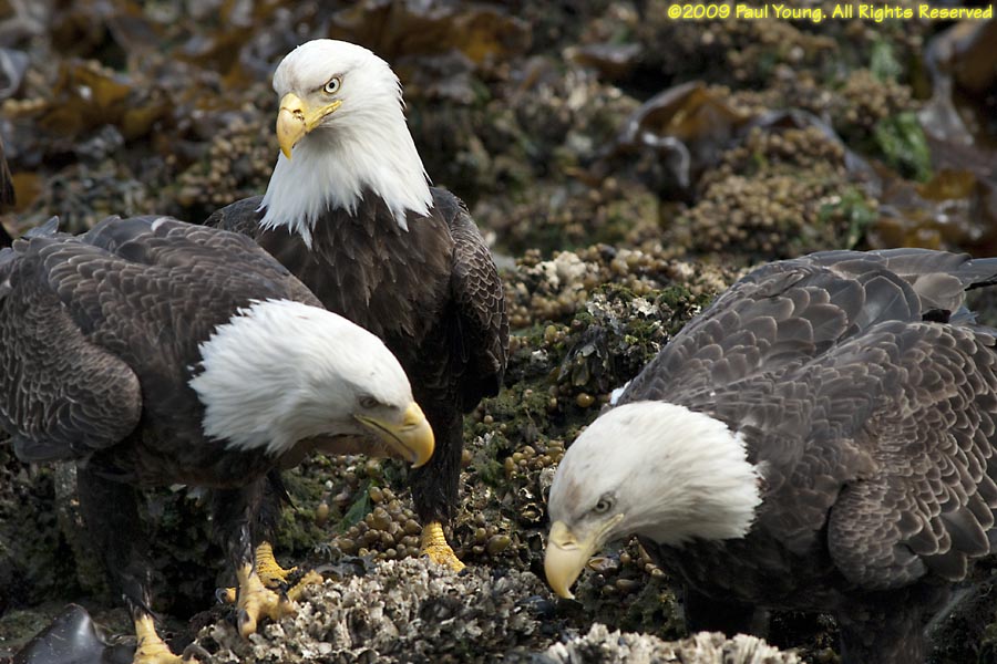 Several hundred bald eagles, Haliaeetus leucocephalus, live year-round on Unalaska Island in the Aleutians.