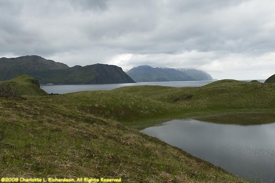 There were 60,000 or so servicemen stationed here during the war. There are remains of gun emplacements and old barracks in several areas. The terrain is all tundra. There are a few sitka spruce trees in town that were planted by the original Russian settlers, but they barely survive the local climate. The soil is volcanic rock, ash, and lava flows.