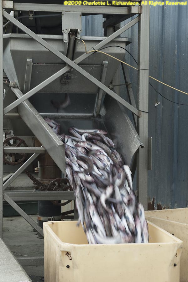 Dutch Harbor, on Unalaska Island, is a big fishing port for pollock and for king crab. Most of the pollock is shipped to Japan in refrigerator containers to be made into surimi (artificial crabmeat). We asked a worker at one of the processing plants how much fish they handle. In a twelve-hour shift, they process 88,000 pounds of pollock! There is not a lot of tourism, though we did see a Japanese sea kayaking group. The Russians named the town Dutch Harbor because they believed that the island was discovered by the Dutch.