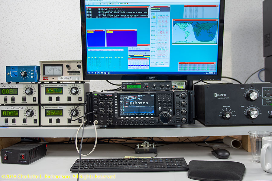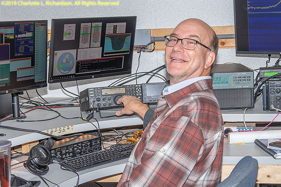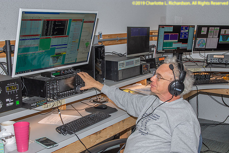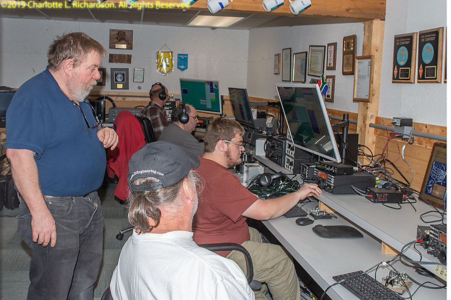 There were nine operators for the contest: KQ1F (Charlotte Richardson), KA1NCN (Dave Case), K1XM (Paul Young), KL7SB (Steve Bloom), KL0R (Wigi Tozzi), N6TR ("Tree" Tyree), KL7TC (Bill Hunstein), KT0W (Nick Hauser), and N5ZO (Marko Myllymaki). Before the contest, Wigi had us test for inter-station interference and any other issues we might have. We were well-staffed and well-prepared.