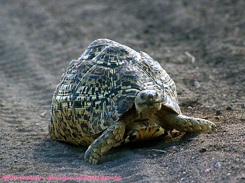 Almost all animals moved out of the way when we drove through in the Toyota minibus. The exceptions were elephants and this mighty leopard tortoise. This animal refused to move and forced us to detour around it.