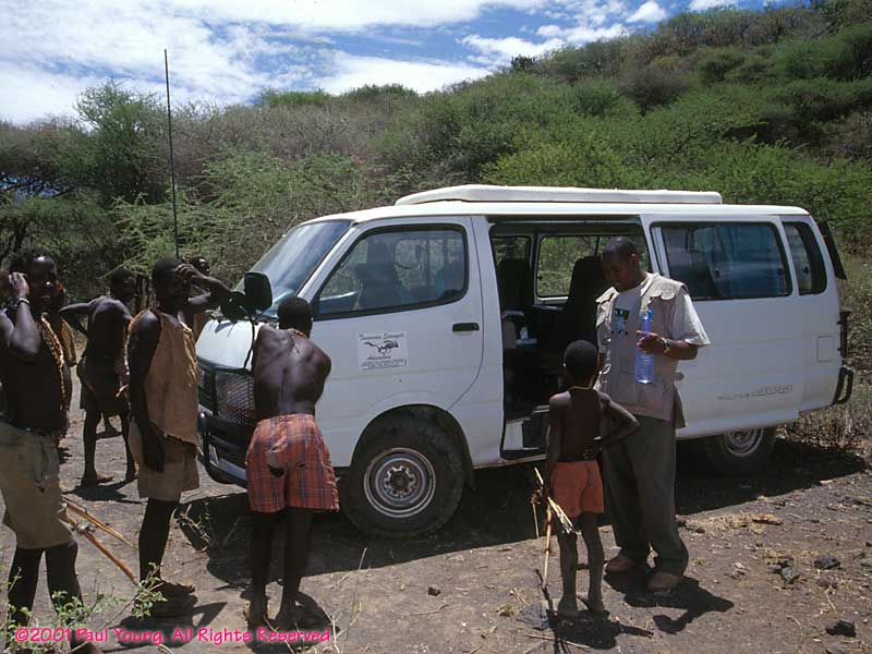 Our vehicle was a Toyota Hiace, a safari van with four-wheel drive and a pop-up top. We removed a middle seat which made it easy for us to get around and to aim a camera in any direction. The van wasn't as impressive looking as a Land Rover but it could go anywhere they could and was actually a better platform for photography.