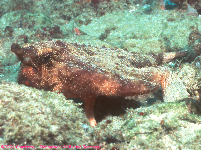 Scorpionfish are ambush predators that usually sit on the bottom. Their spines carry poison, but the fish are not aggressive.