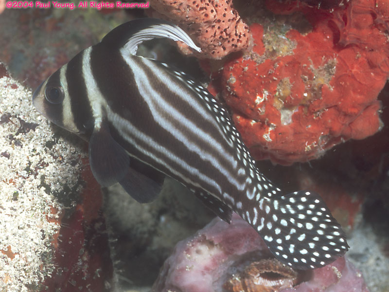 juvenile spotted drum adult spotted drum Spotted drum, Equetus punctatus (juvenile left, adult right)