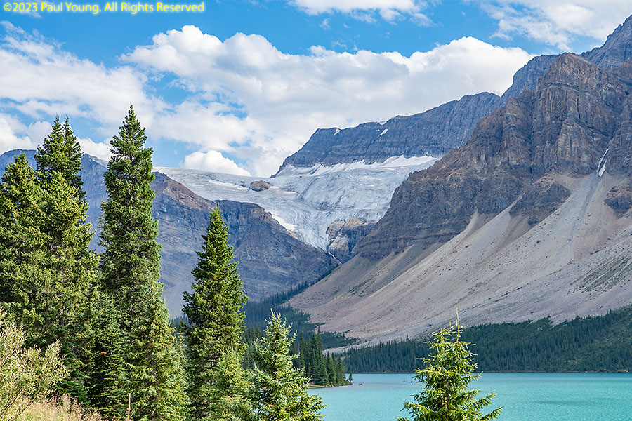Bow Lake, at an elevation of 1920 m (6299') at the base of Bow Summit, is formed by runoff from the Bow Glacier in the Wapta Icefield. It is one of the largest lakes in Banff.