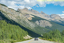 The beautiful 230 km (140 miles) Icefields Parkway (highway 93) links Jasper and Banff National Parks through spectacular mountain scenery, waterfalls, valleys, and glaciers. This is some of the most beautiful scenery in Banff. Sunwapta Pass, at 2034 meters (6675') the second-highest driveable pass in the national parks system, marks the boundary between Jasper and Banff parks. The southern part of the Icefields Parkway is very busy, especially with tour busses.