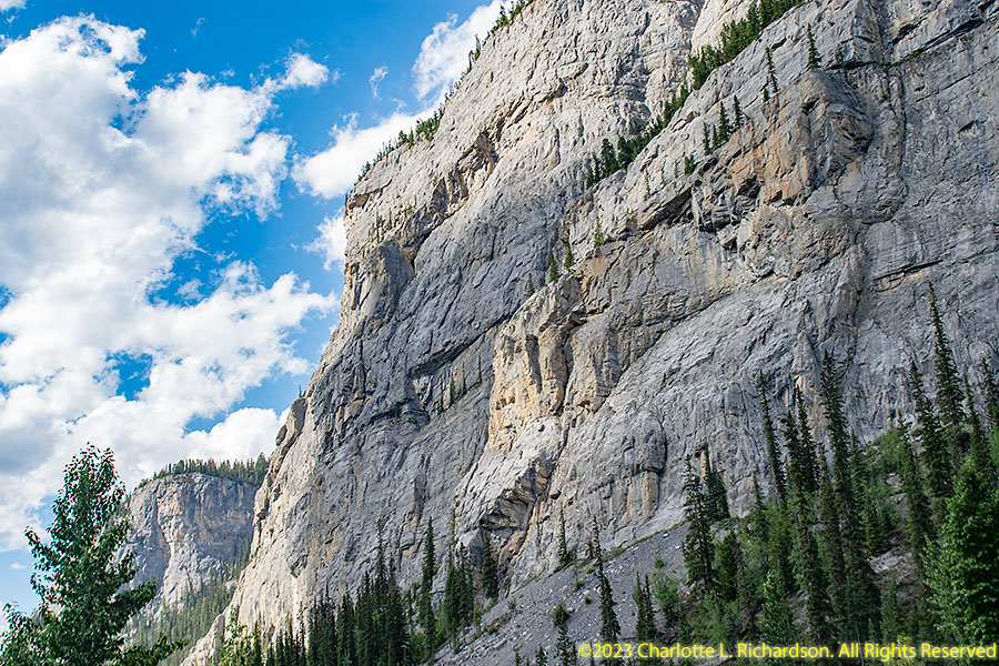 The Weeping Wall, 126 km (76 mi) southeast of Jasper on the Icefields Parkway near the northern border of Banff National Park, is a series of cascading waterfalls off a set of cliffs about a thousand feet tall partway up the western base of Cirrus Mountain.