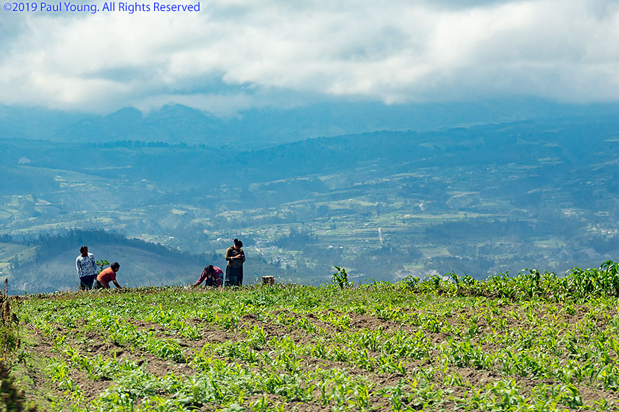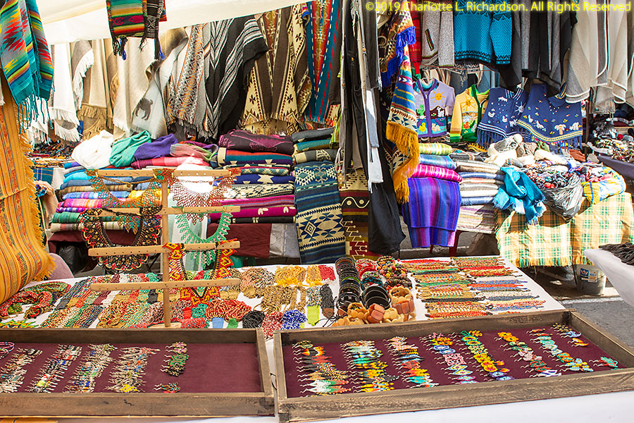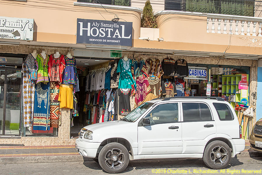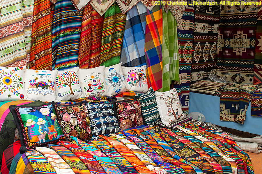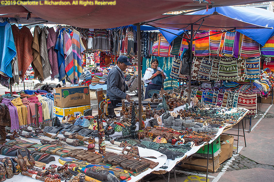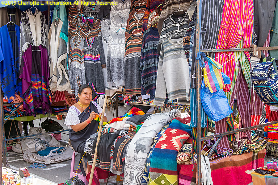 Otavalo has a population of around 39,000, mostly indigenous Otavalo, and lies at an elevation of 8300'. The indigenous people are famous for weaving textiles, mostly wool. Women tradtionally wear white embroidered blouses with flared lace sleeves and black or dark overskirts with cream or white underskirts. Men wear white trousers and dark blue ponchos. The handicraft market of Otavalo features products made by these indigenous people.