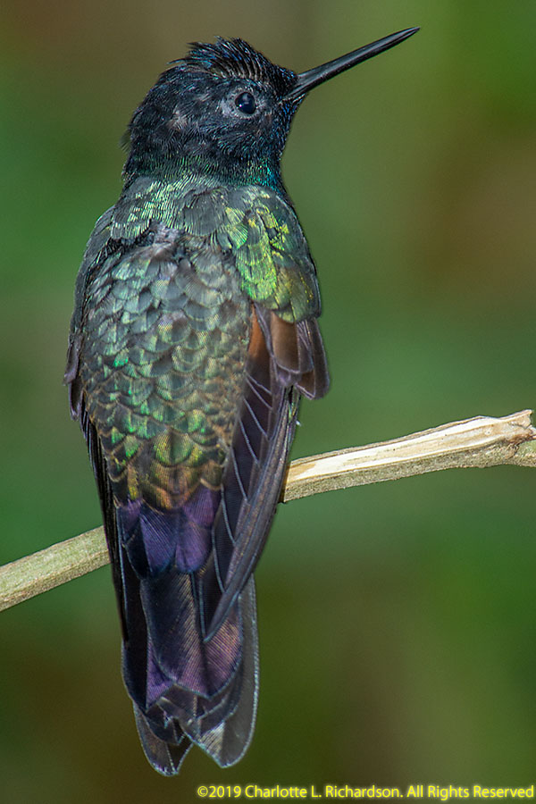 Green-crowned brilliant, Heirodoxa javula (male left, females right)