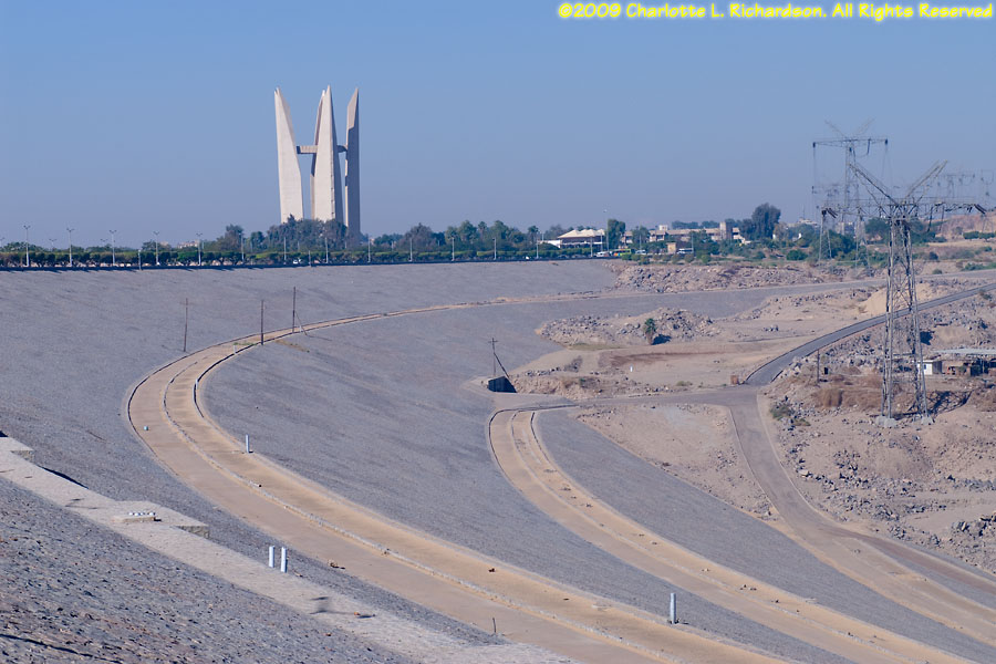 The Aswan High Dam was built between 1960 and 1972 with the help of the Russians 6 km upstream of the British-built Aswan Dam (built 1898-1902), creating 300-mile-long Lake Nasser. The dam both regulates the flooding of the Nile and provides hydroelectric power for most of Egypt. The lotus-shaped tower commemorates the Russian support. Photography is heavily regulated around the dam.