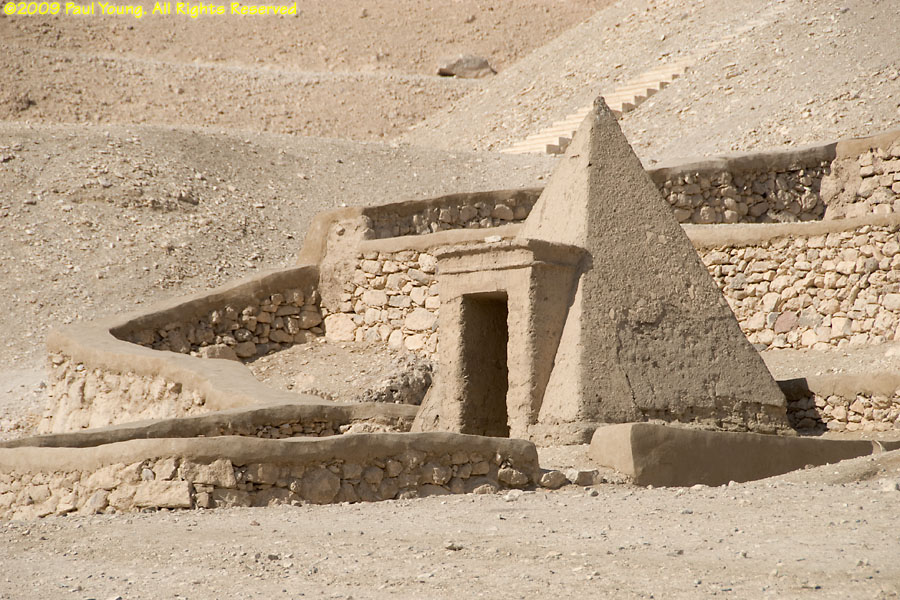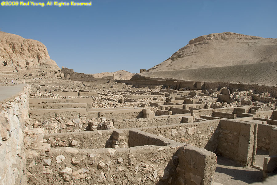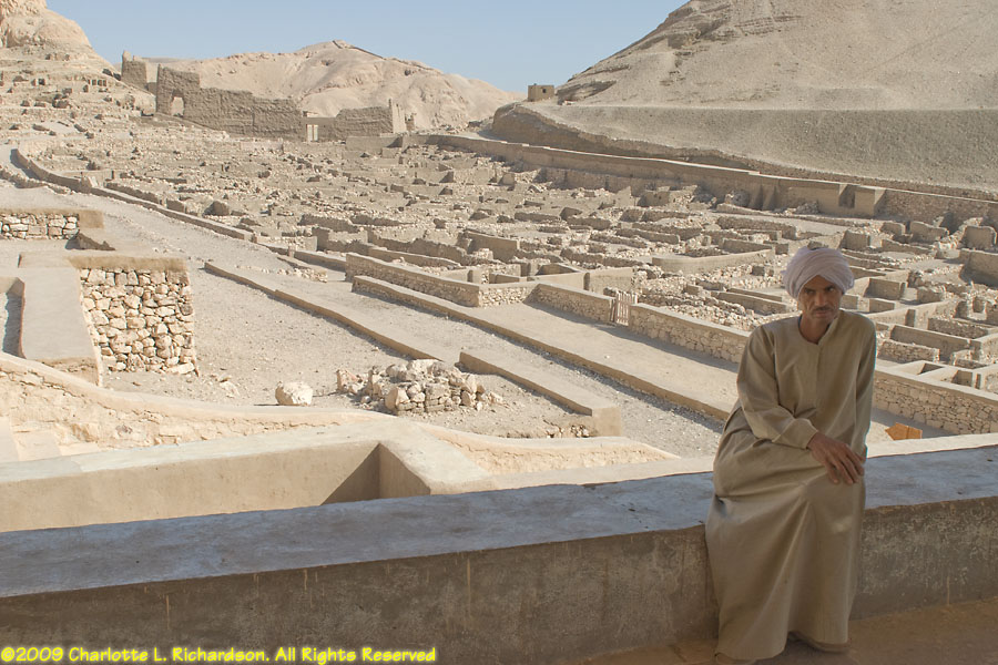 The necropolis at Deir al-Medina, near the Valley of the Queens in Thebes, is the burial place of the craftsmen, laborers, and servants who worked on the royal tombs. No photography is allowed inside the tombs.