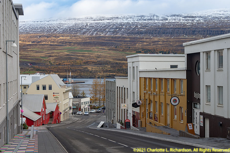 Akureyri, in North Iceland, is Iceland's fourth-largest city, with a population of around eighteen thousand. It lies at the head of Eyjarfjorthur, Iceland's longest fjord (60 km). It was settled in the 9th century and is an important port and fishing center due to its ice-free harbor. The entire town is geothermally heated.