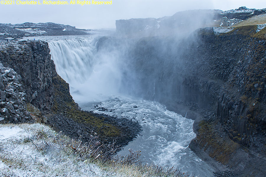 At the southern entrance to Jokulsarglufar (Vatnajokull National Park), Dettifoss is one of Europe's largest waterfalls. The waterfall is 45m high and has the greatest water volume of any waterfall in Europe. The national park protects the Vatnajokull Ice Cap.